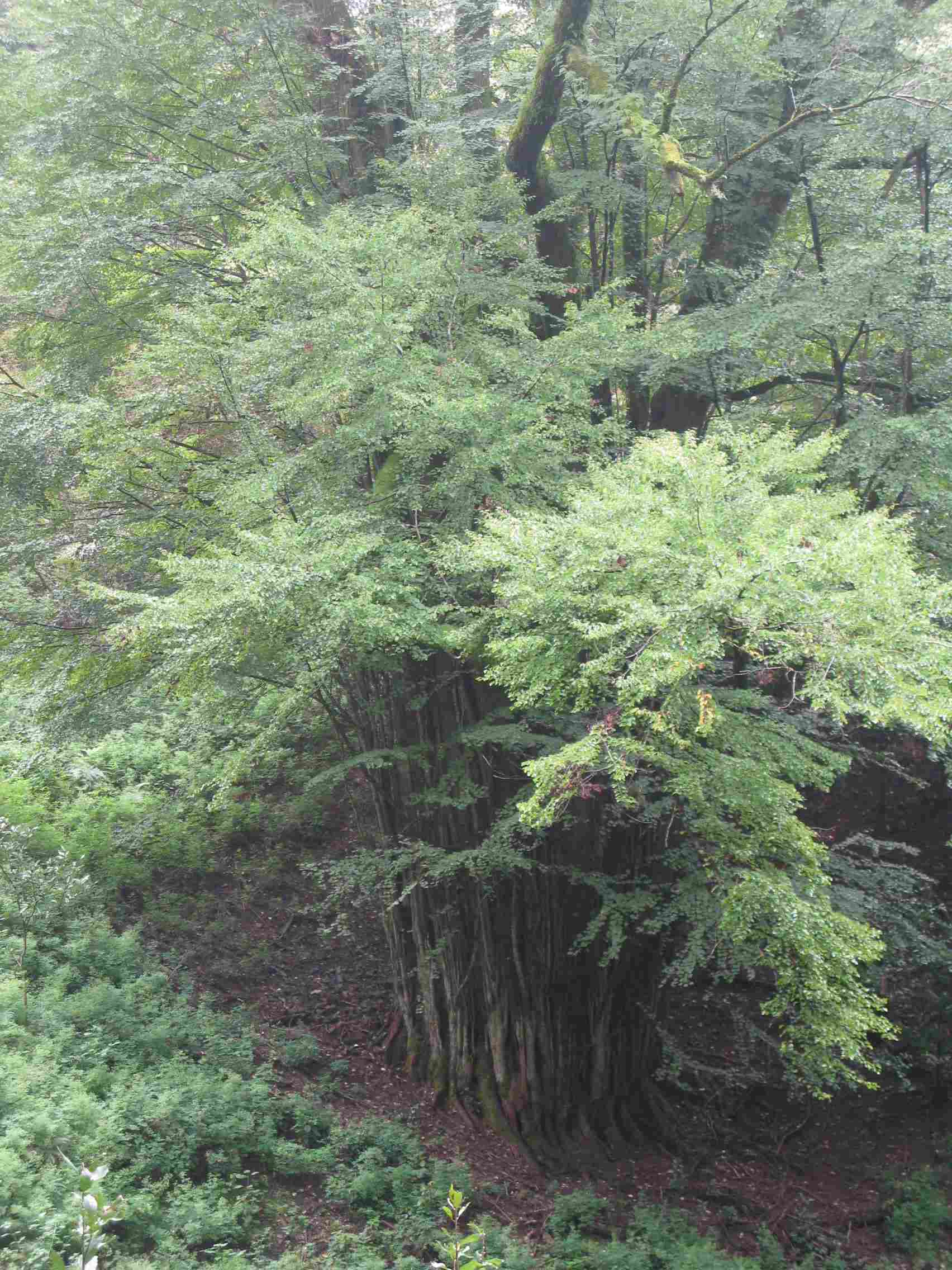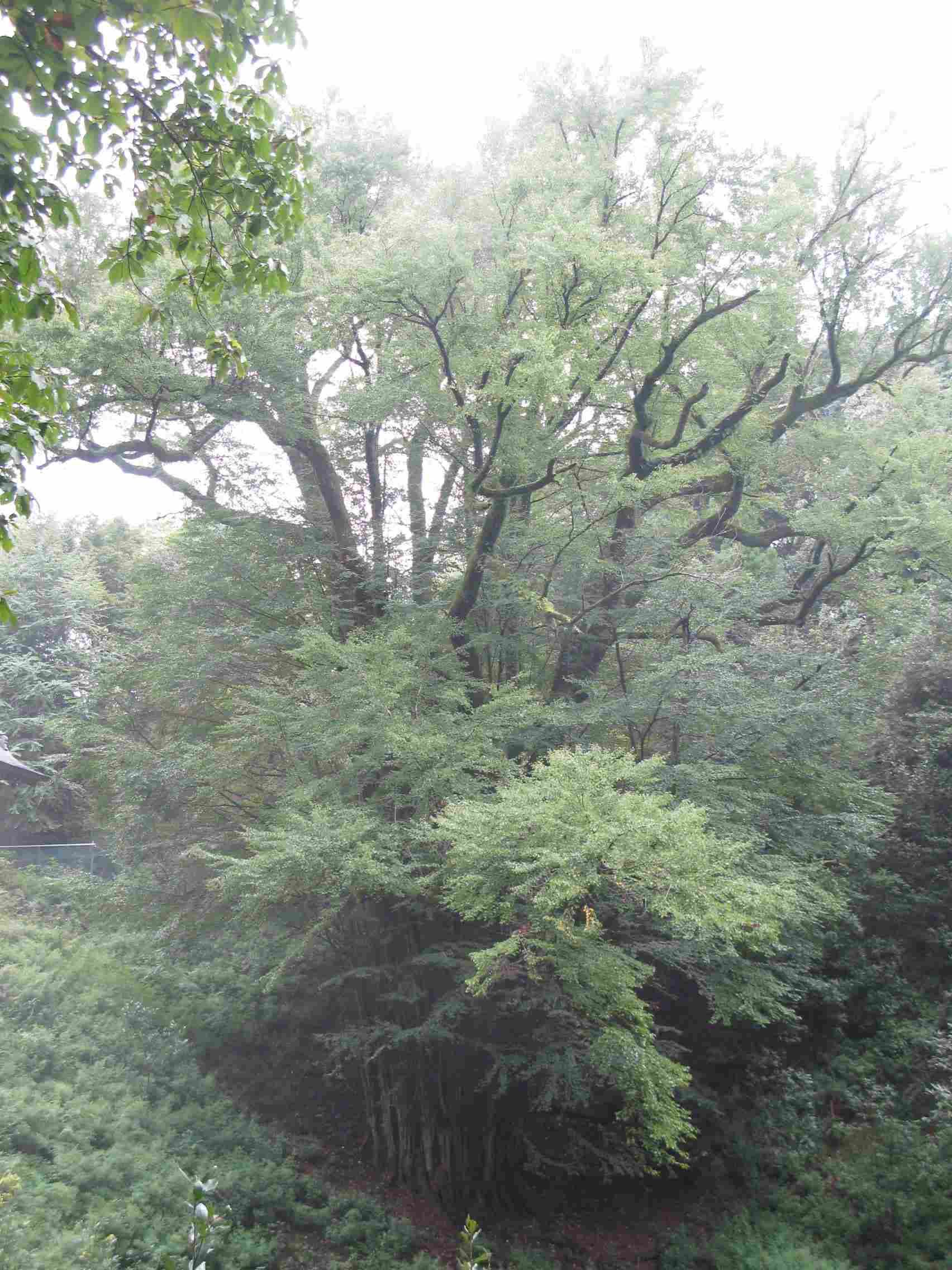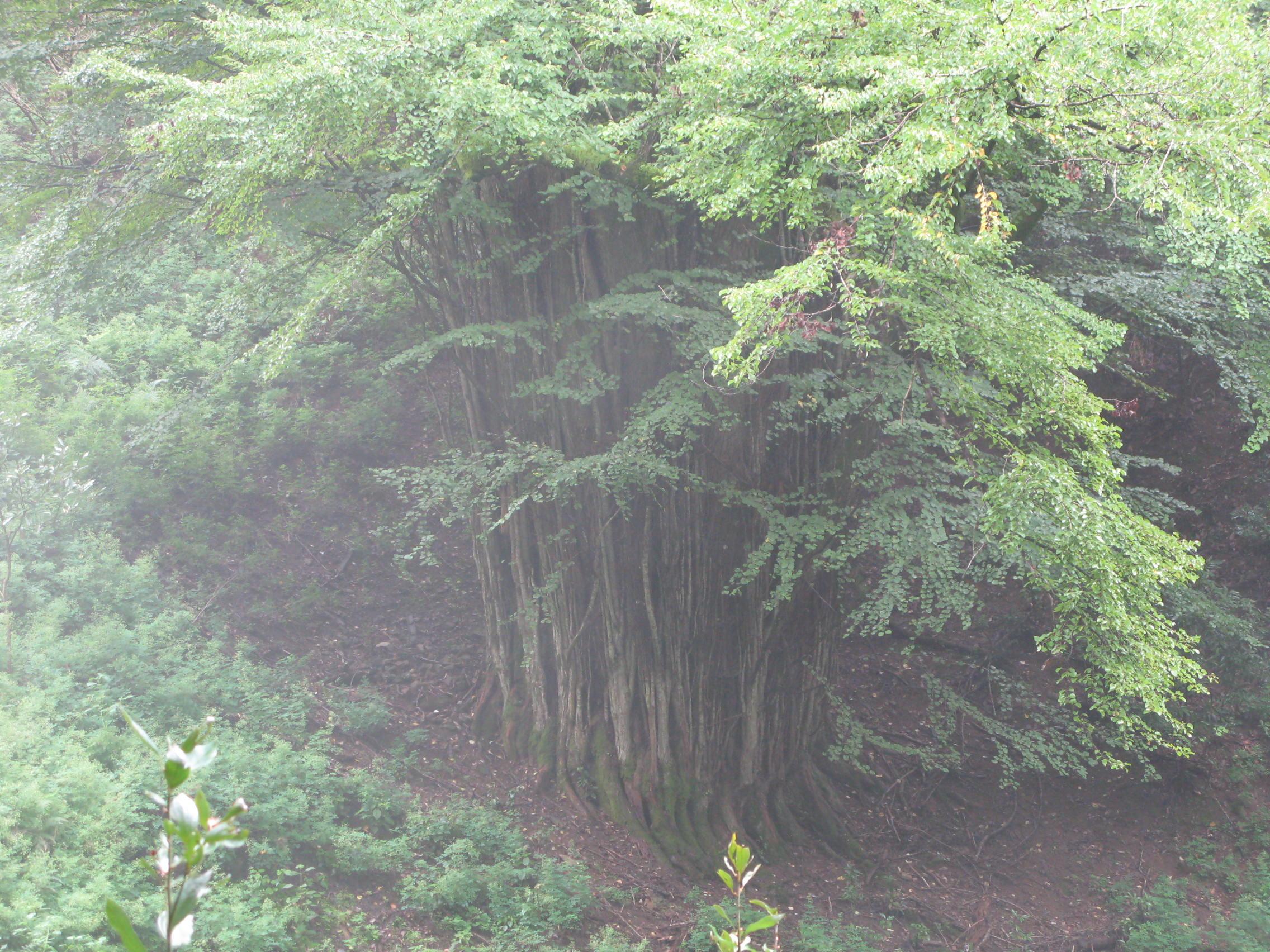 全体。複数の主幹をひこばえが取り巻く。薄く霧が立ち込めている。