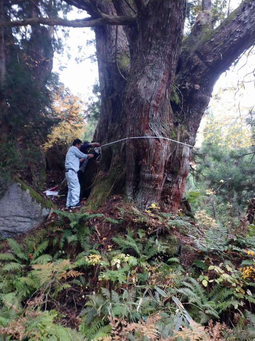 主幹については10mであることから、報道から受ける印象よりは樹齢は若いと考えられるが、それでも数百年は経ているものと思われる。